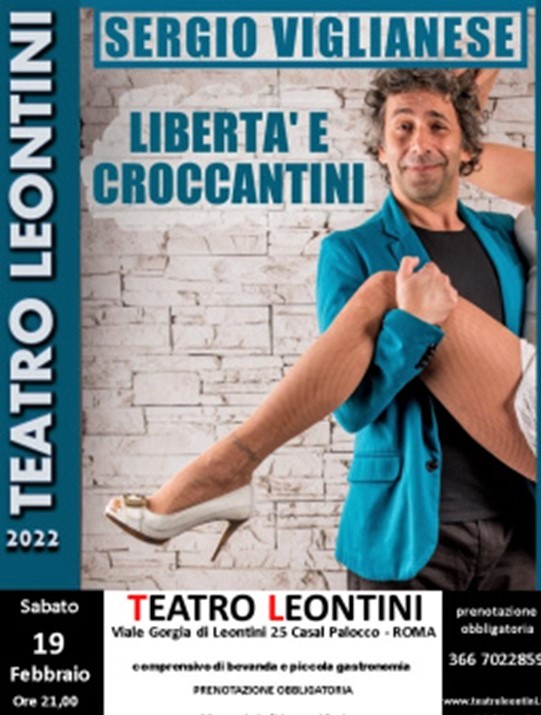 E' presente con il suo nuovo spettacolo del 2022 dal titolo "Libertà e Croccantini, al Teatro Leontini di Roma, che andrà in scena il prossimo 19 febbraio alle ore 21,00.